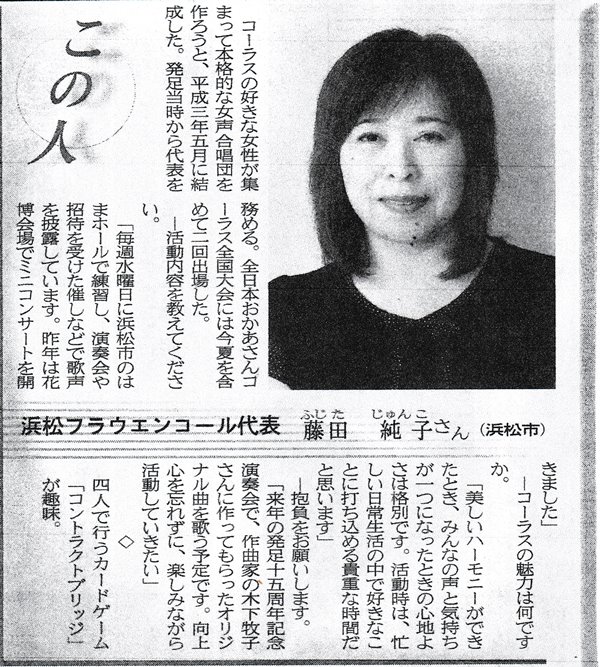 私たち「浜松フラウエンコール」は、平成3年5月に「浜松に本格的な